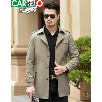 卡帝乐鳄鱼2020秋冬新款风衣夹克男 中青年商务翻领英伦风修身秋季防风可选冬季加厚保暖男士中长款外套 卡其春秋款 XL(180)