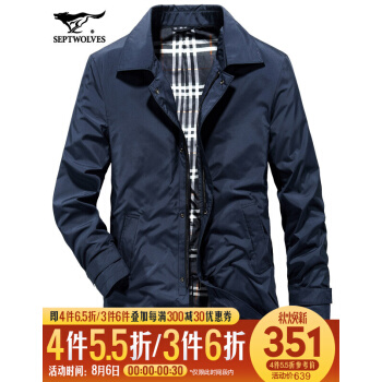 七匹狼风衣男中长款2020秋季新款中年修身韩版帅气加棉保暖休闲夹克外套潮 102(深蓝) 175/92A/XL
