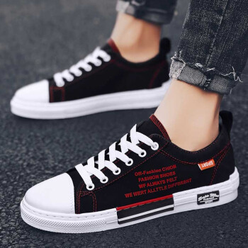 男鞋夏季新款休闲鞋男透气帆布鞋男百搭布鞋时尚四季板鞋低帮鞋男潮流户外运动鞋 Q88-黑红 41