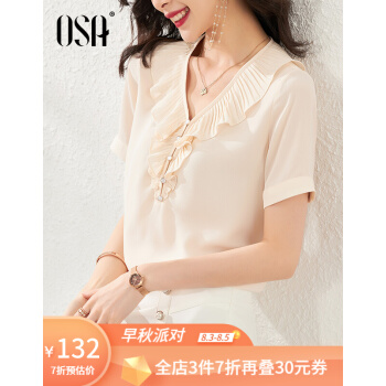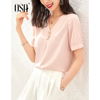 OSA欧莎气质短袖雪纺衫女遮肚子2020新款夏季欧洲站洋气小衫时尚上衣 粉色 S
