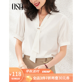 OSA欧莎白色雪纺衫女时尚夏装2020新款v领洋气小衫时尚遮肚子短袖上衣 白色 S
