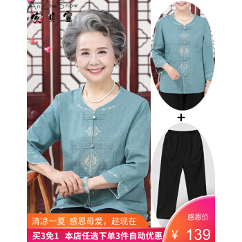 安贞雪中老年女装奶奶装春秋装透气棉衬衫2020秋季老年人女士刺绣衬衣老太太开衫妈妈装LYFS3426 蓝色两件套装 3XL建议120-140斤
