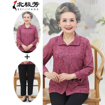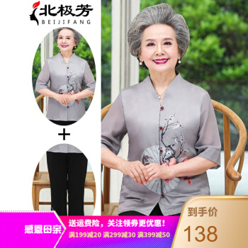 北极芳 中老年女装奶奶装夏装套装印花妈妈装衬衫2020老年人女士中长袖中国风衬衣 093-2024 灰色套装 2XL【105-120斤】