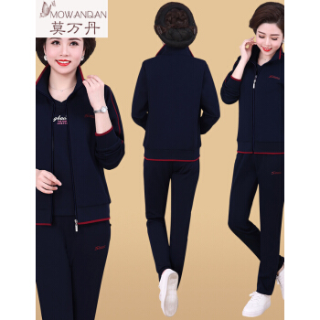 莫万丹高端新品中老年女装妈妈装休闲运动套装女2020秋装新款中年女装春秋运动服三件套YWD2001 ASTS宝蓝 3XL【建议130-140斤】
