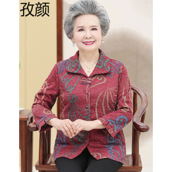 孜颜中老年女装秋装老年人妈妈装衬衫长袖上衣薄外套60-80岁奶奶装春秋季老人衣服 红色单件 3XL(建议110-125斤)