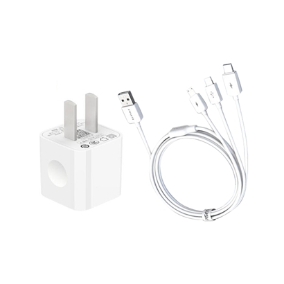 手机充电器3合1数据线套装【ABS/白色】