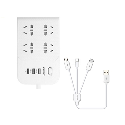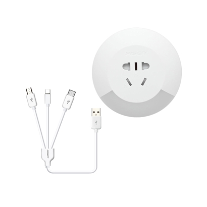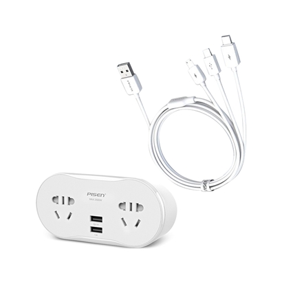 智能USB排插3合1数据线套装【ABS/白色】