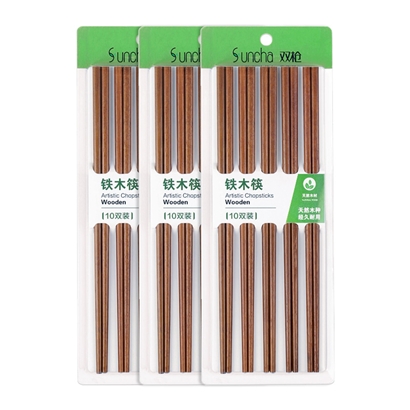 双枪 天然家用铁木筷30双装【铁木/木原色】