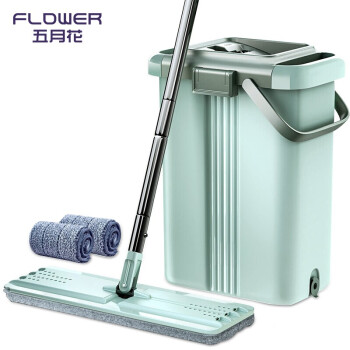 五月花 特大号刮刮乐免手洗38cm平板拖把 干湿两用拖布 家用墩布网红懒人地拖 2块配布PB02