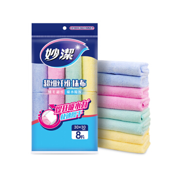 妙洁超细纤维抹布 清洁布厨房擦桌子巾玻璃杯地不掉毛吸水干净用品工具 8片装