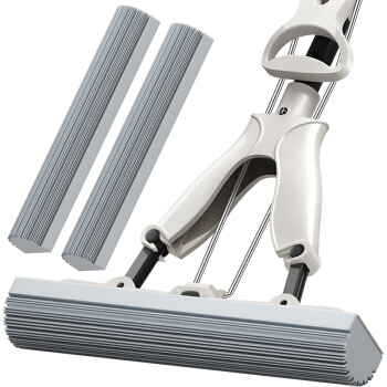 妙洁海绵拖把 家用办公室吸水墩布懒人免手洗自动胶棉托地板挤水式清洁伸缩长杆工具刮水神器 共2个替换头