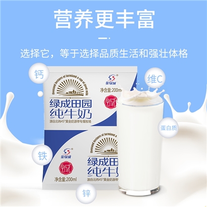 金绿成新疆田园纯牛奶200ml*20袋/箱