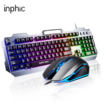 英菲克(INPHIC)V680h真机械手感键盘鼠标套装有线游戏办公电脑台式机USB外接吃鸡背光键鼠套装金属面板 灰