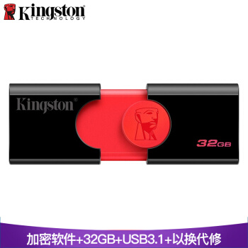 金士顿(Kingston)u盘 USB3.1 DT106系统投标车载高速U盘优盘 黑红款 精英版 32G