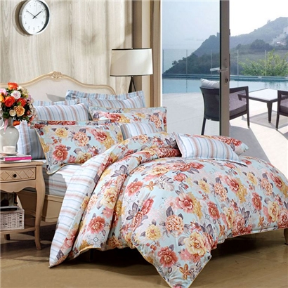 蝶梦花溪 床单四件套(被套1件床单1件枕套2件)(适合1.8米床)【纯棉/橙色】
